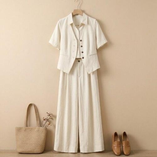 [넬리]캐미 린넨 버튼 베스트 셋업_ND2ST002