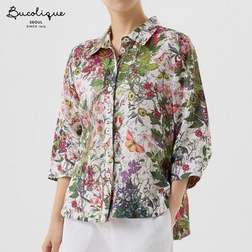 [비꼴리끄]린넨 프린트 셔츠 블라우스 B252WB2030
