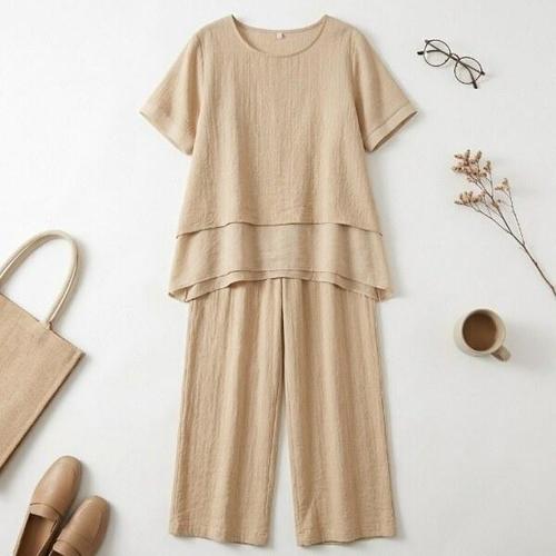 수워나 여성 린넨 투피스 세트