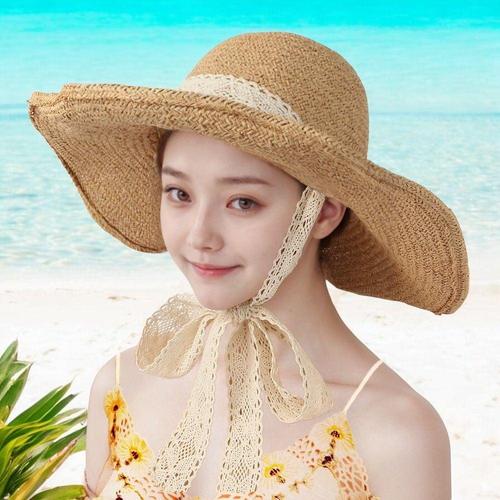 여성용 비치 밀짚 모자 패션 햇빛 차단 보양 릴리안 WFIXOVC