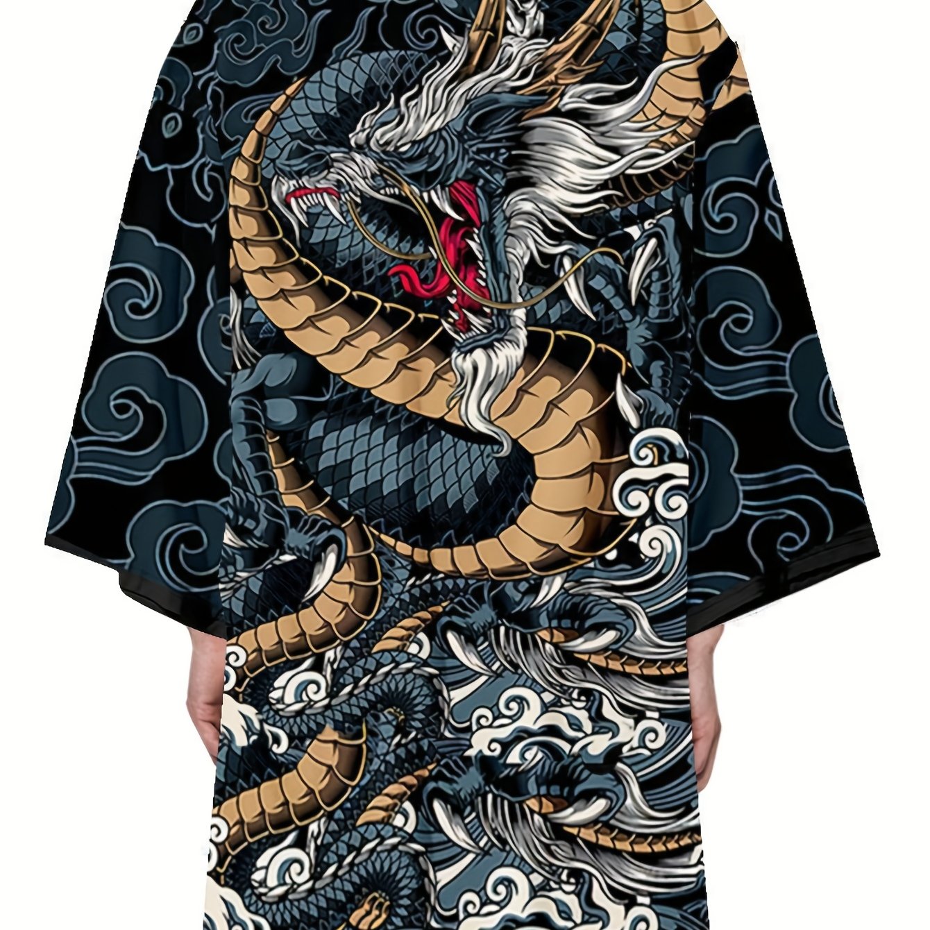 TEMU 2025년 신상 국산 트렌드 드래곤 토템 롱 케이프, 일본 스타일 가디건, 루즈핏 유령 기모노 (7부 소매), 드래곤 로브 목욕 가운