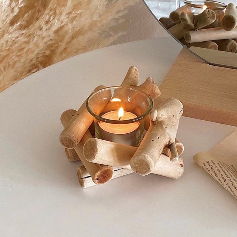 모닥불 우드 글라스 티라이트 캔들 홀더 빈티지 겨울인테리어