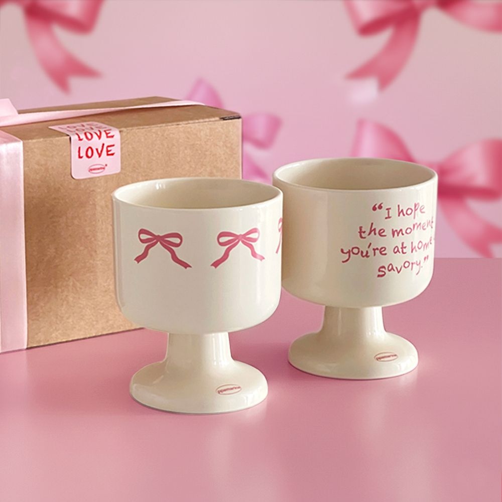 빠마린_핑크 리본 고블렛 2p세트_세라믹 와인잔/막걸리잔/요거트볼(국내 제조/식세기 가능)