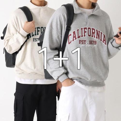 [지지블랙][1+1] 캘리포니아 나염 오버핏 반집업 맨투맨 ZZBMT017