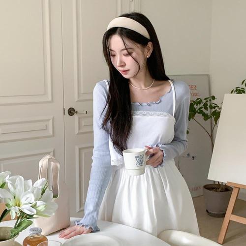 [옷자락] 여성 머랭 펀칭 물결 넥 기본 긴팔 티셔츠