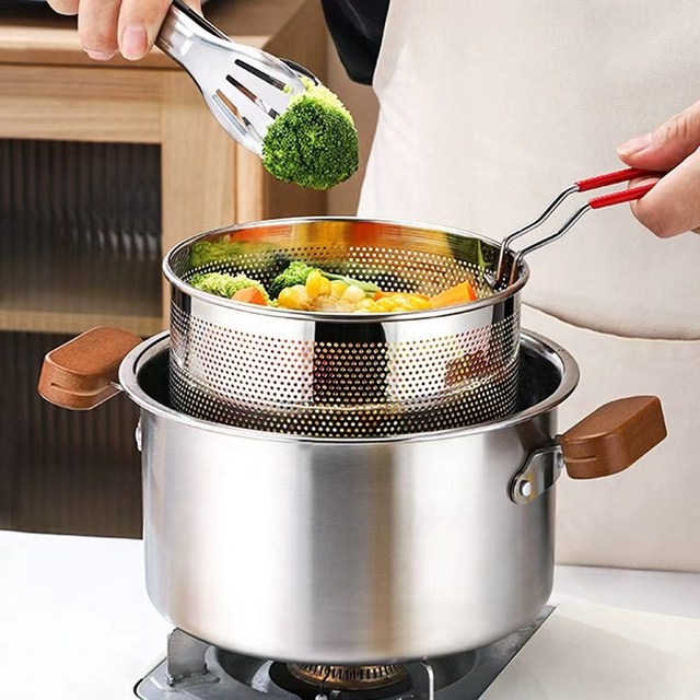 더화이트 스텐 멀티팟 거름망 세트 / 냄비 국수 어묵 튀김 소형 12cm
