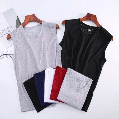 남성용 아이스 실크 메쉬 조끼 경량 스포츠 여름 착용 민소매 티셔츠 탱크 탑 캐주얼 패션 겉옷