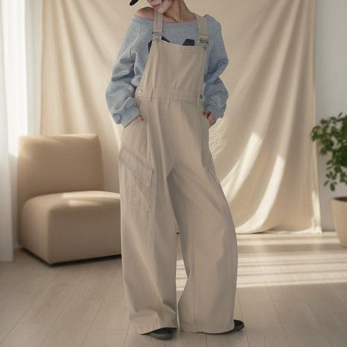 [다잇템]여성 넓은 맥시절개 카고팬츠 멜빵바지