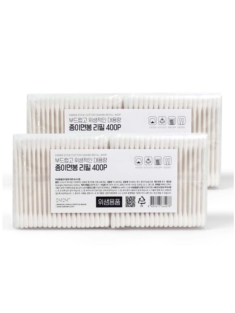 [소낙소낙] 부드럽고 위생적인 대용량 종이면봉 리필 400P X 2세트