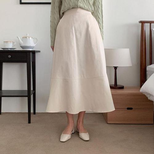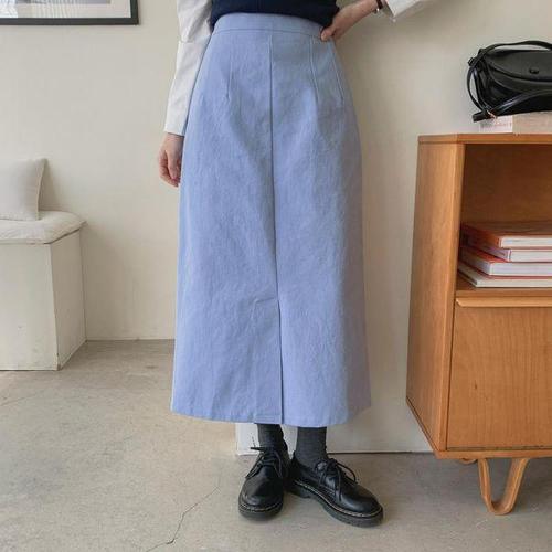 블레스유 여성 롱 스커트 뒷트임 H라인 코튼 긴치마 데일리스커트 롱치마