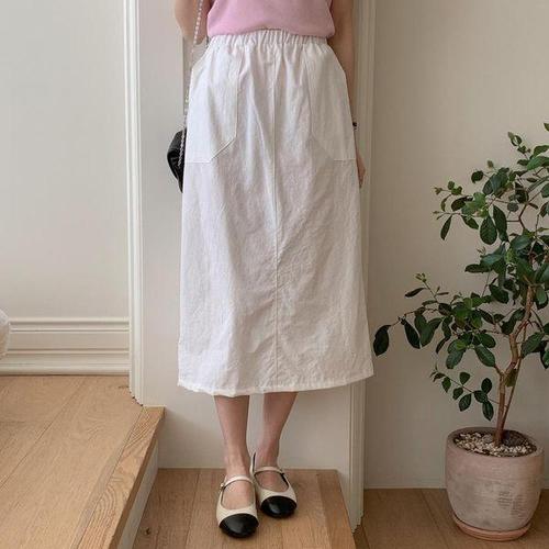 [옷자락] 여자 허리밴딩 포인트 포켓 뒷트임 코튼 롱스커트