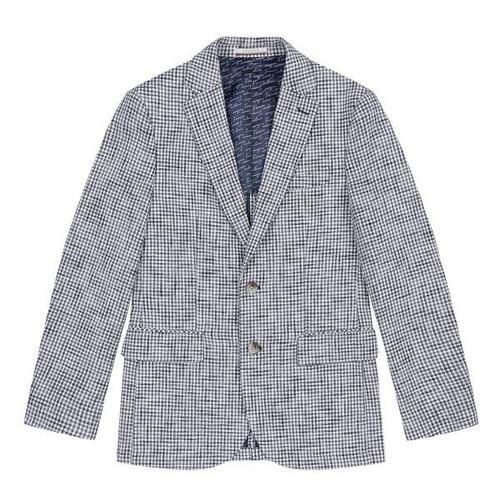 [트레몰로]MARIO세정 25SS 면 혼방 스트레치 린넨체크 자켓 블루 TRHFU5S1231