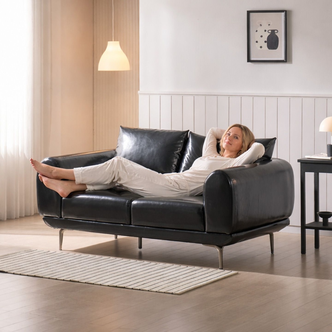 루덴 가죽 1인/2인/3인 모던 블랙 소파 (쿠션 증정)