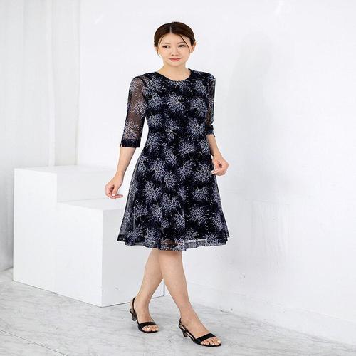 [모슬린]엄마옷 라운드 플레어 망사 원피스 614FGH060 마담/중년여성/빅사이즈/50대/60대