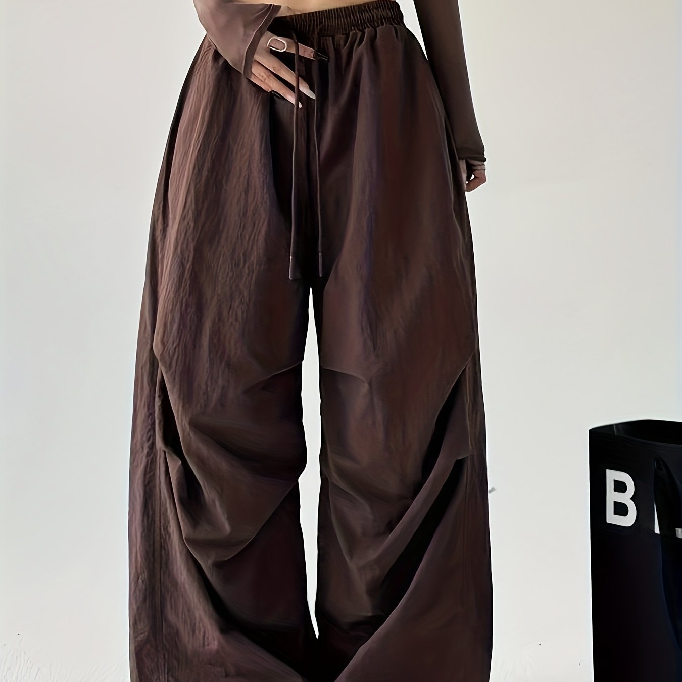 TEMU 여성용 카고 팬츠, 미국 스타일 브라운 레그 낙하산병 카고 팬츠, 여성 2025 여름 신상 루즈핏 퀵드라이 캐주얼 와이드 레그 팬츠