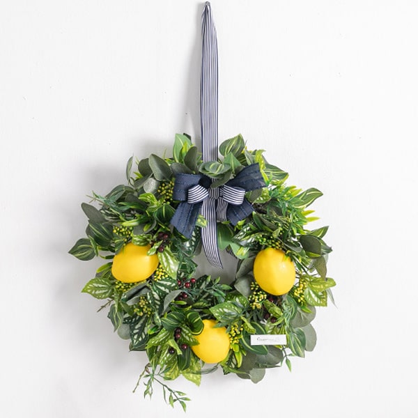 달개비 조화 꽃 리스 벽장식 포지타노레몬 40cm 인테리어 과일 모형