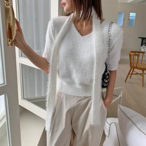 [옷자락] 여자 브이넥 소프트 앙고라 머플러 니트세트