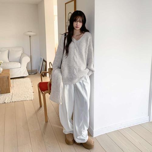 [옷자락] 여자 포근 아방핏 브이넥 니트 머플러 세트