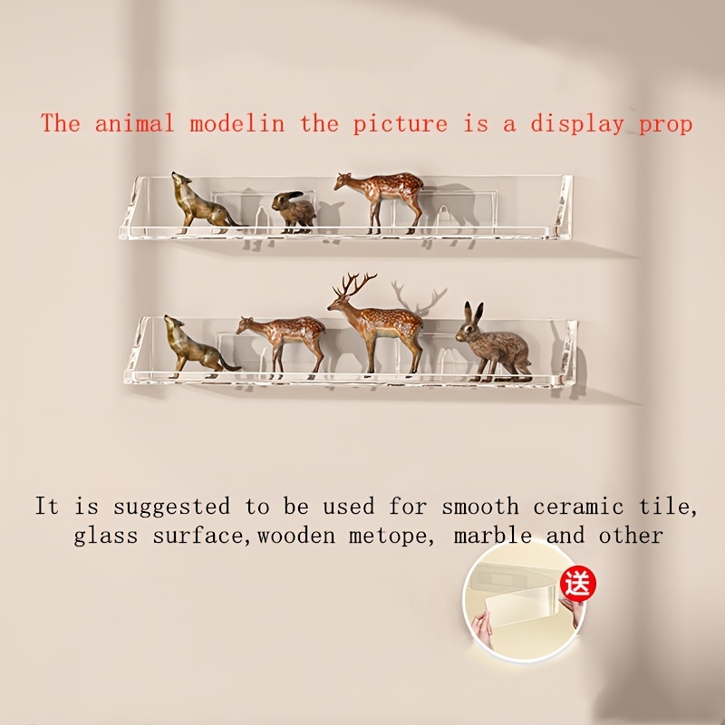 TEMU 모델, 블록, 동물 피규어를 위한 모던 플라스틱 쇼케이스 2개 세트 - 전원 불필요 접착식 벽면 정리함