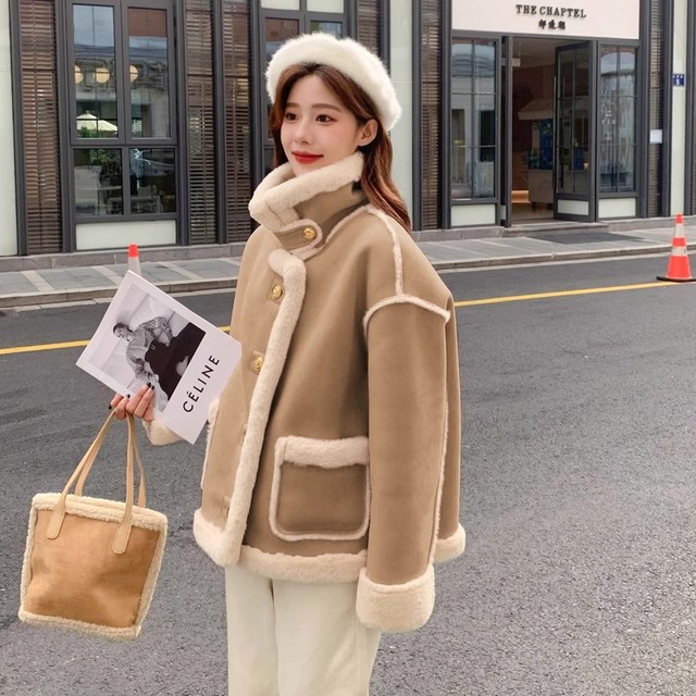 여성용 가을 빈티지 캐주얼 자켓 슬림핏 무스탕 코트 OP3
