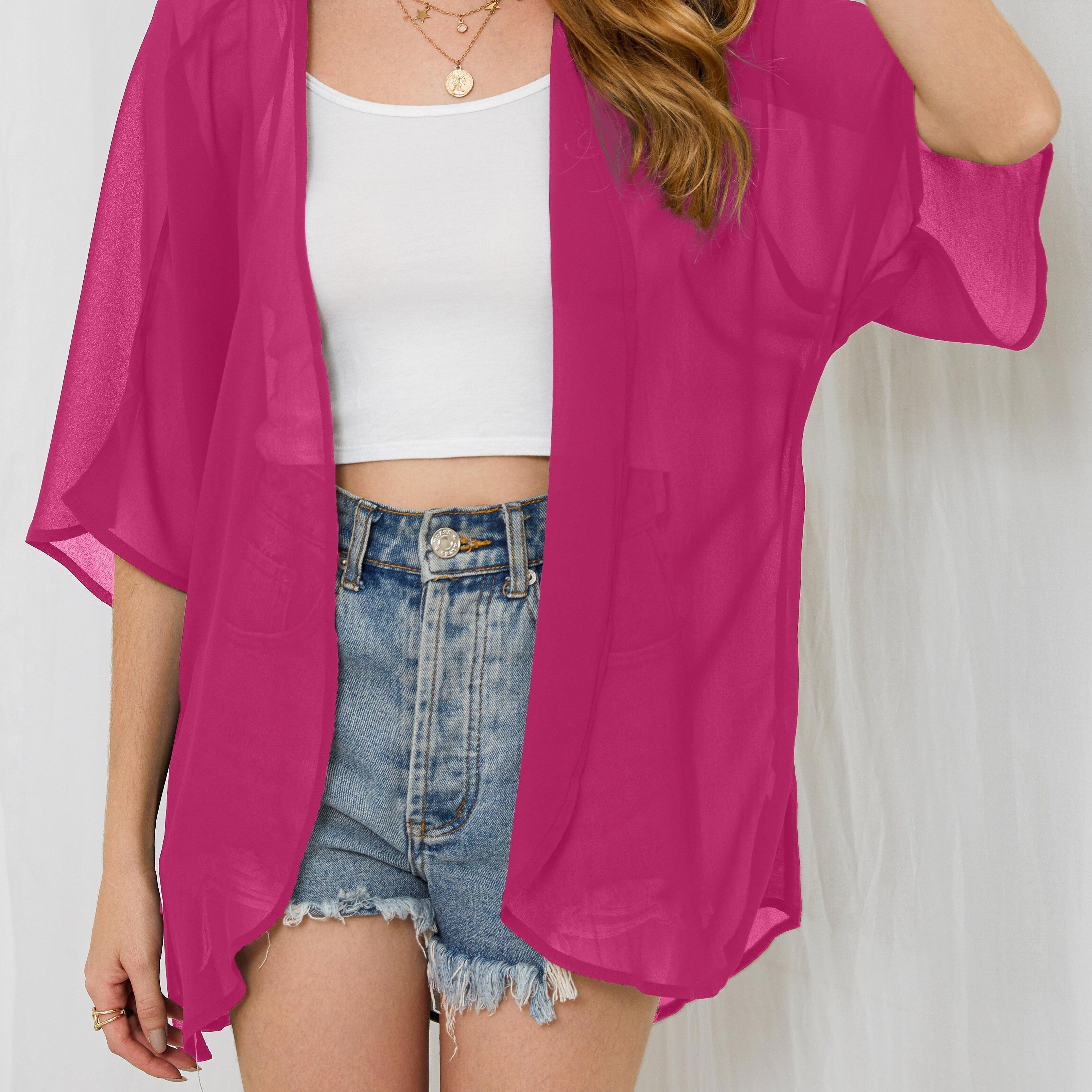 TEMU 시폰 커버업 인, 단색 캐주얼하고 편안한 블라우스 기모노, 여성 수영복 및 휴가 복장에 이상적입니다. 이 우아한 시어 기모노는 해변 등에 완벽합니다.