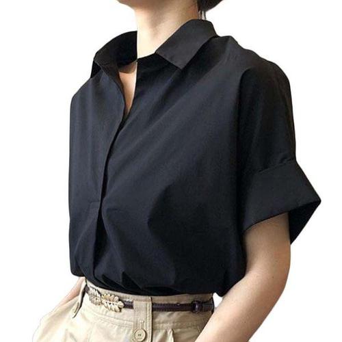 [오너클랜]인기상품 오픈카라 루즈핏 5부 반팔 무지 셔츠블라우스 여성 여름 데일리웨어 [WFLLKGM_260305]