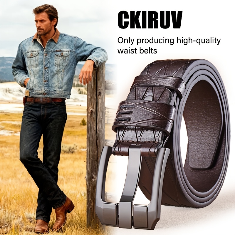 TEMU 남성용 정품 가죽 벨트, 패셔너블 핀 버클 합금 - 캐주얼하고 다재다능, 스트리트 스타일에 적합, 좋은 선물 선택