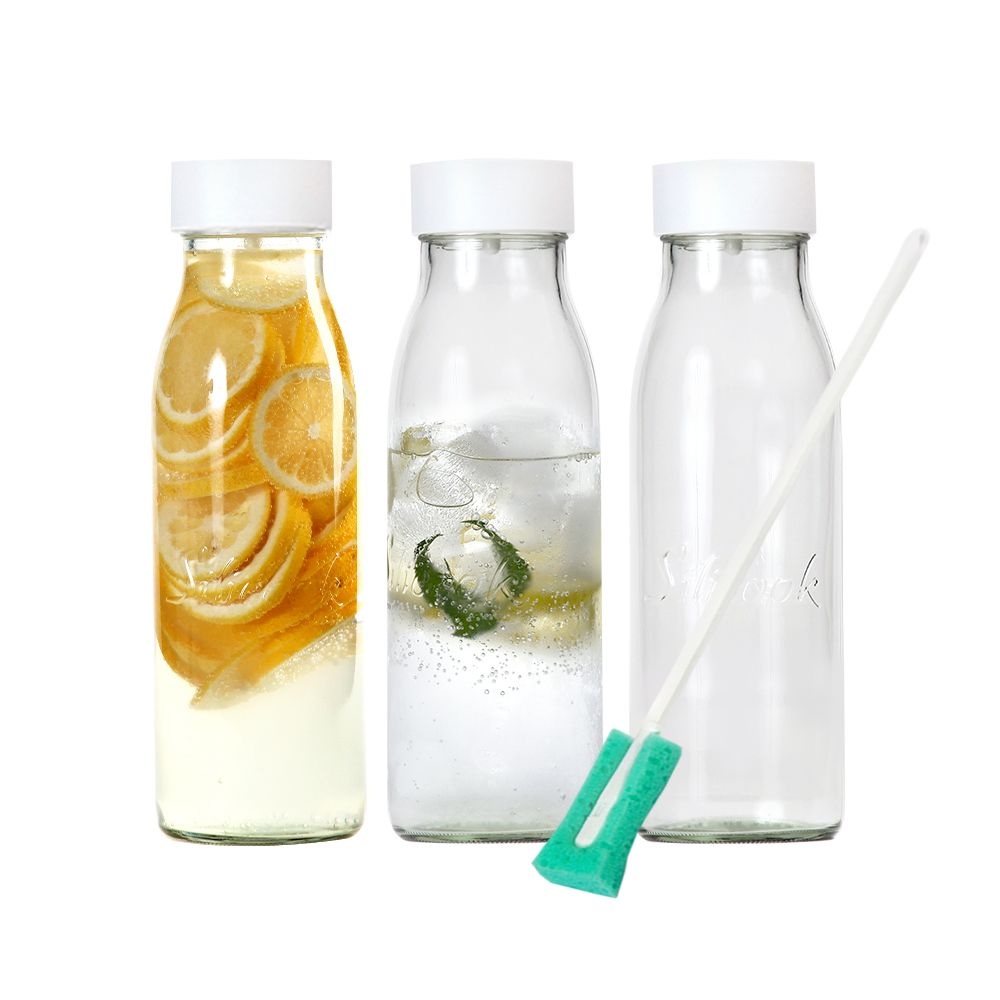 기울이면 열리는 뚜껑, 투명 유 리 물 병 1000ml 3개 (세척솔증정)