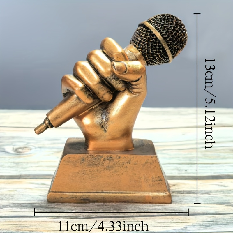 TEMU 1개 마이크 스태츄 피규어 - 음악 테마 레진 수집품, 리얼리스틱 마이크 /사무실/무대 장식용 - 선반, 탁상 디스플레이용 스피커 - 가수, DJ, 팟캐스터를 위한 선물 (실내용)