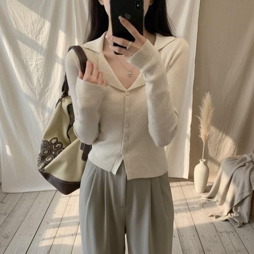 [다잇템]여성 클래식 카디건 카라 미니멀리즘 오피스룩