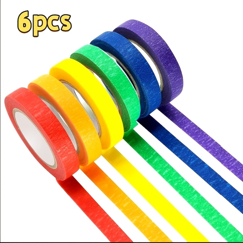 TEMU 3개/6개 멀티컬러 밝은 색상 마스킹 테이프, 미술 및 공예에 적합 - 쉽게 찢어지는 종이 테이프, 6가지 색상 (빨강, 주황, 노랑, 초록, 보라) - 지문 방지