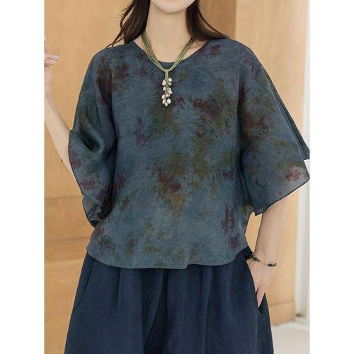 [디얼마미]사각 나염 인견 블라우스 /마담 미시 중년 여성 빅사이즈 40대 50대