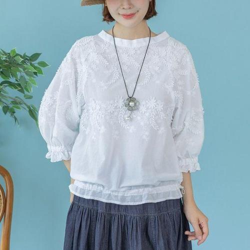 [허밍퍼플]여성용 2736-스윗 레이스 BL 여름 옆셔링 66-130 블라우스 미시 마담 중년 여자옷 체형커버