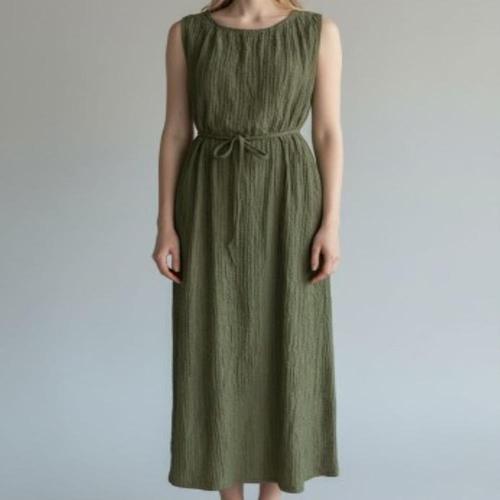 [옷자락] 여성 민소매 허리끈 롱 데일리 드레스