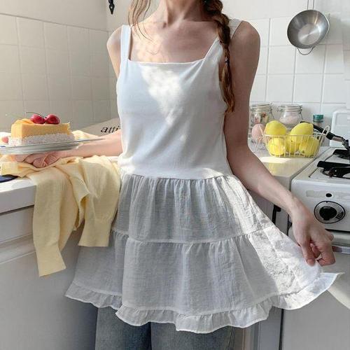 [옷자락] 여자 시원한 프릴 레이어드 민소매 뷔스티에 블라우스
