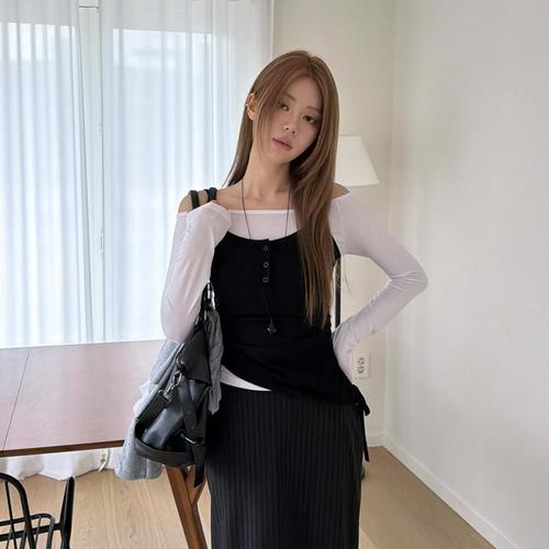 페이크 투피스 여친 원피스 여름 캐주얼 롱스커트 나시 슬림핏 OP2