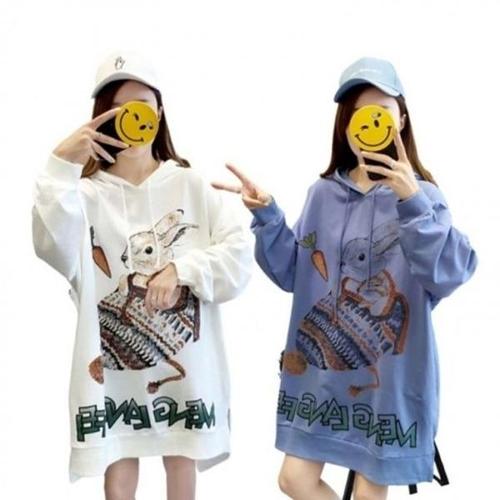 [셀럽하우스]2색 OJYU1391 래빗마크 후드 후드티 롱 루즈핏 프리사이즈 롱후