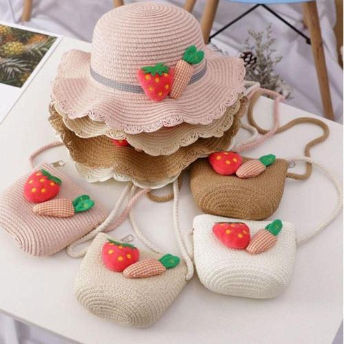 딸기 와펜 아동용 왕골 모자가방 / 밀짚모자/왕골 WFJXQ8O