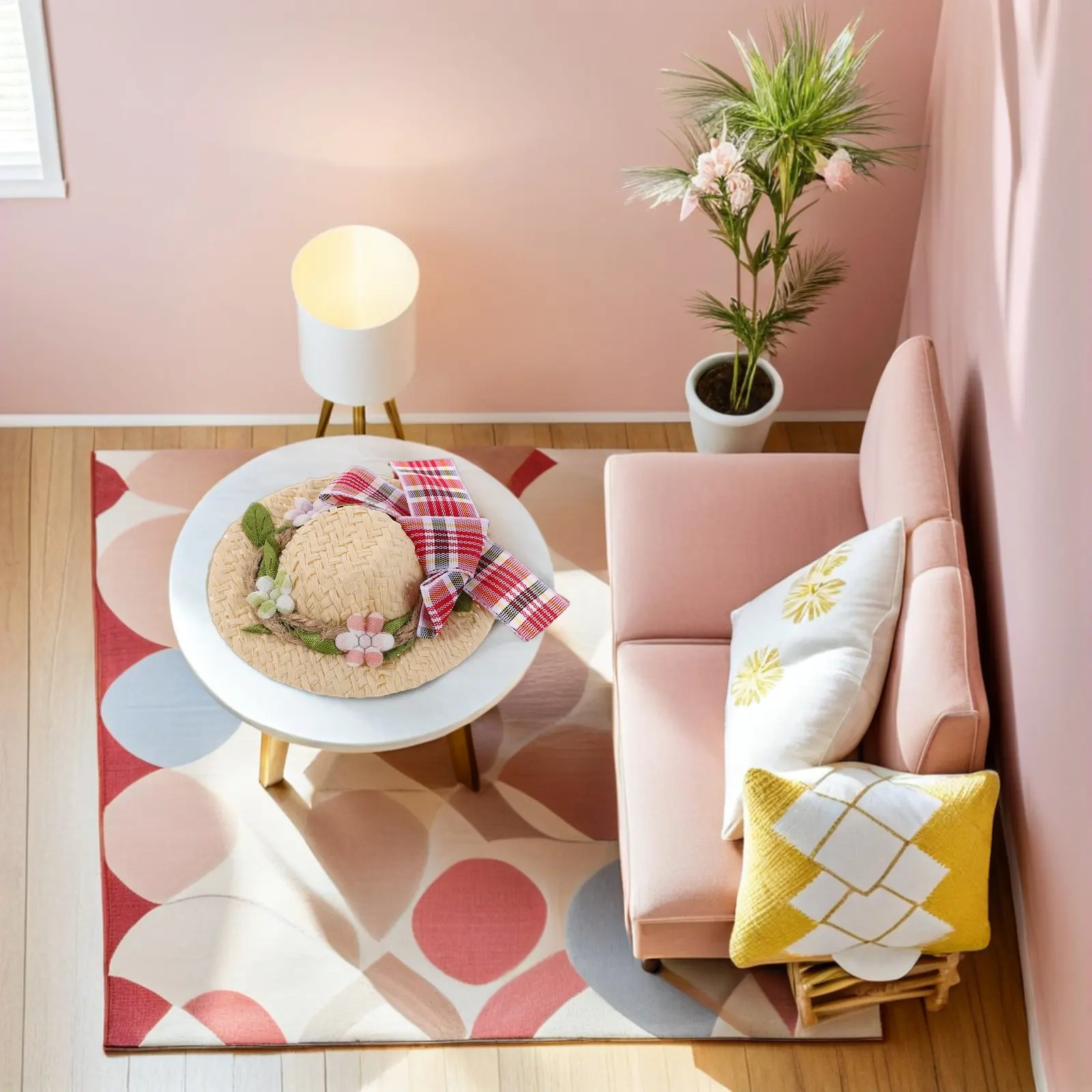 미니 공예 밀짚 모자 시뮬레이션 된 작은 수공예 모자 DIY 인형 집 공예를위한 사진 소품 17Cm 장식 액세서리 여름