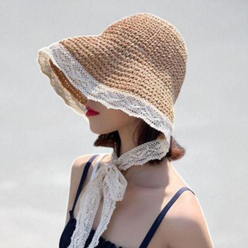 여성 러블리 레이스 페이퍼 밀짚 버킷햇 벙거지 끈모자 WFJJHLS