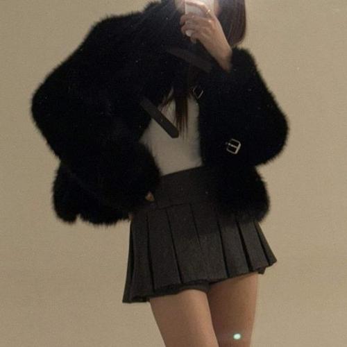[옷자락] 여자 클럽룩 버클 하이넥 페이크밍크 겨울 퍼 자켓