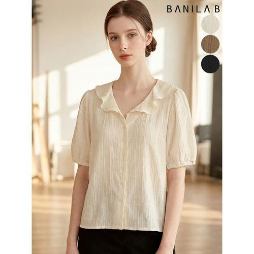 [바닐라비]여성 퍼프 반소매 카라 블라우스