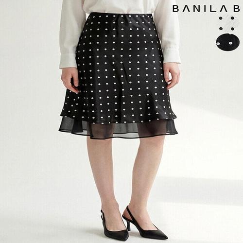 [바닐라비]여성 허리밴딩 도트 패턴 미디 스커트