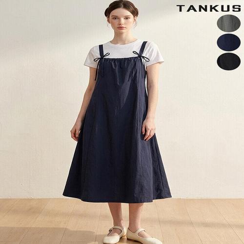 [탱커스]여성 리본끈 바스락 롱 끈원피스