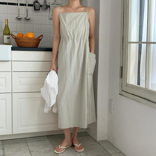 [옷자락] 여자 스트링 포켓 바스락 끈나시 롱원피스