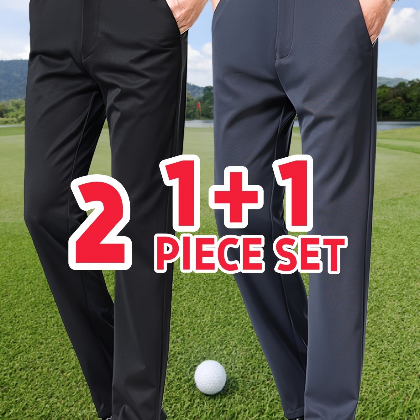 TEMU 남성용 패션 비즈니스 캐주얼 드레스 팬츠 2벌 세트, 얇은 핏, 시원하고 통기성 좋은 사계절용 정장 바지, 버튼 디테일이 특징, 골프 및 사무실 활동에 적합, 발렌타인데이 선물로 이상적, 다양한 사이즈와 조합 가능