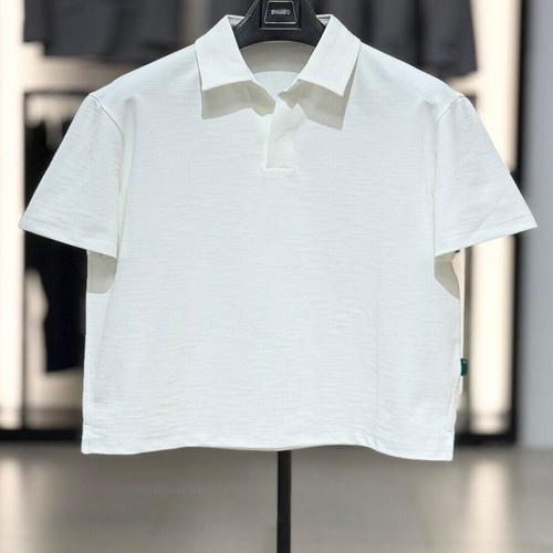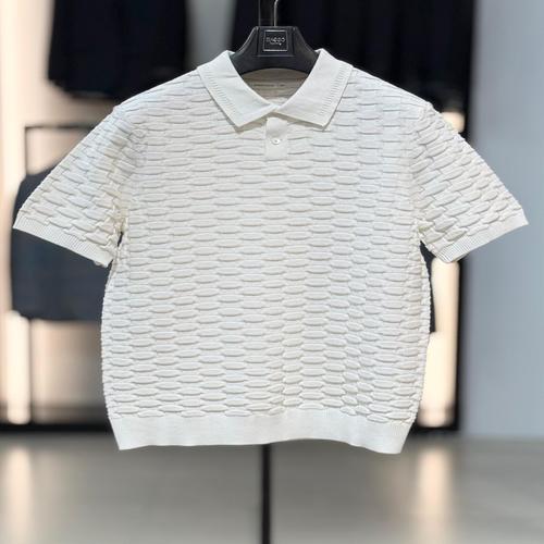 [바쏘옴므]아이보리 면 혼방 엠보싱 카라 반팔 니트_SC
