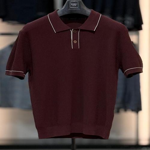 [바쏘옴므]와인 배색 포인트 면혼방 카라 반팔 니트_SC