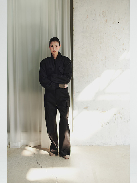 [시크블랙]스트랙 카고포켓 밑단 스트링 일자핏 밴딩팬츠