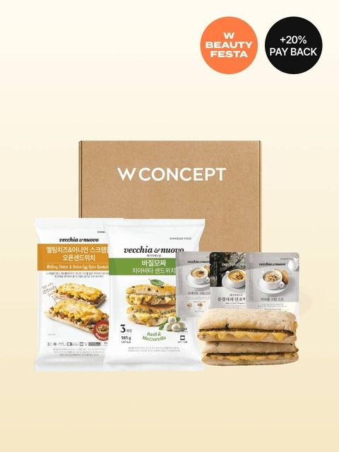 [신세계푸드] 바질모짜 샌드위치 1팩 + 멜팅치즈 샌드위치 1팩 + 머쉬룸 스프 1팩 + 포테이토 스프 1팩 + 단호박스프 1개